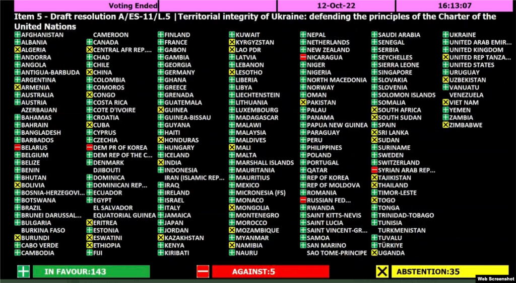 Resultados de las votaciones en ONU sobre el conflicto entre Rusia y Ucrania
