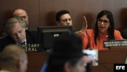 "Hay un curso de acoso contra Venezuela dirigido por los Estados Unidos de Norteamérica a través del ocupante de la Secretaría General de la OEA, Luis Almagro, y un grupo de países que ha conformado una facción minoritaria y ha fomentado un ambiente internacional pernicioso sobre Venezuela", agregó.